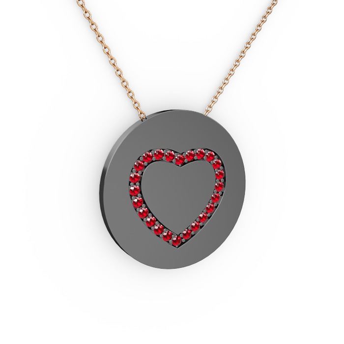 Garnet 925 ayar siyah rodyum kaplama gümüş kolye (40 cm rose altın rolo zincir)
