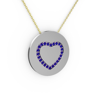Lab safir 925 ayar gümüş kolye (40 cm altın rolo zincir)