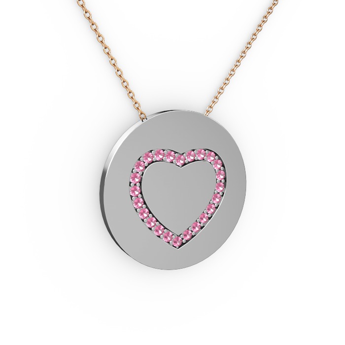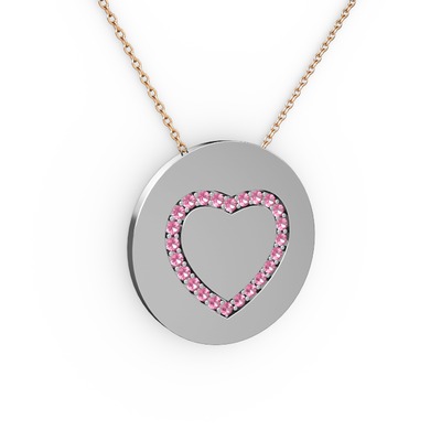 Pembe kuvars 14 ayar beyaz altın kolye (40 cm rose altın rolo zincir)