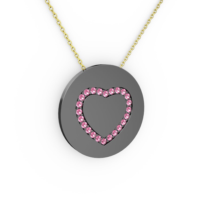 Pembe kuvars 925 ayar siyah rodyum kaplama gümüş kolye (40 cm altın rolo zincir)