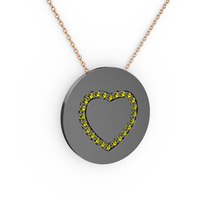 Peridot 925 ayar siyah rodyum kaplama gümüş kolye (40 cm rose altın rolo zincir)