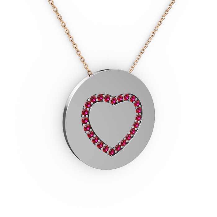Rodolit garnet 8 ayar beyaz altın kolye (40 cm gümüş rolo zincir)
