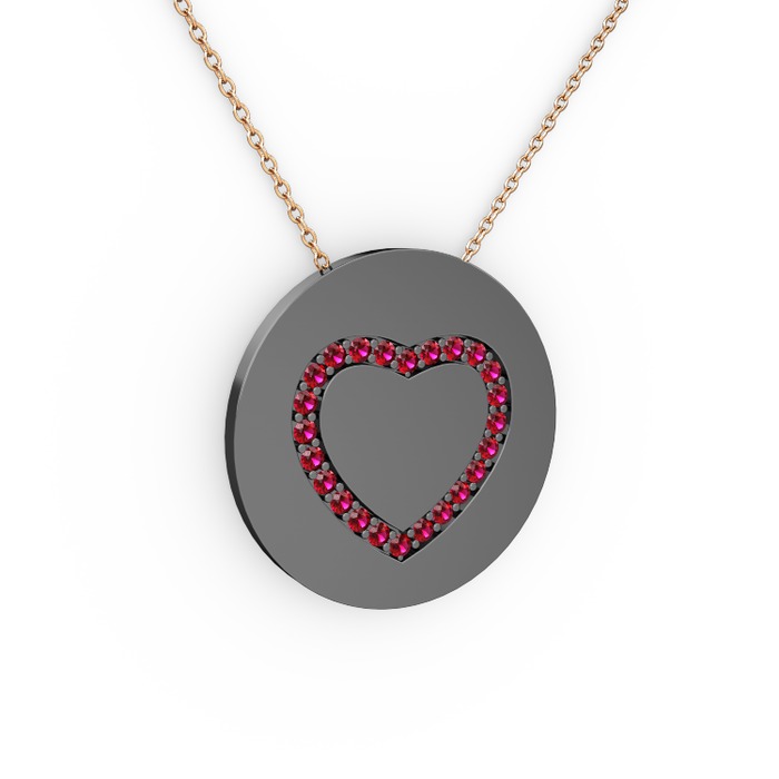 Rodolit garnet 925 ayar siyah rodyum kaplama gümüş kolye (40 cm rose altın rolo zincir)