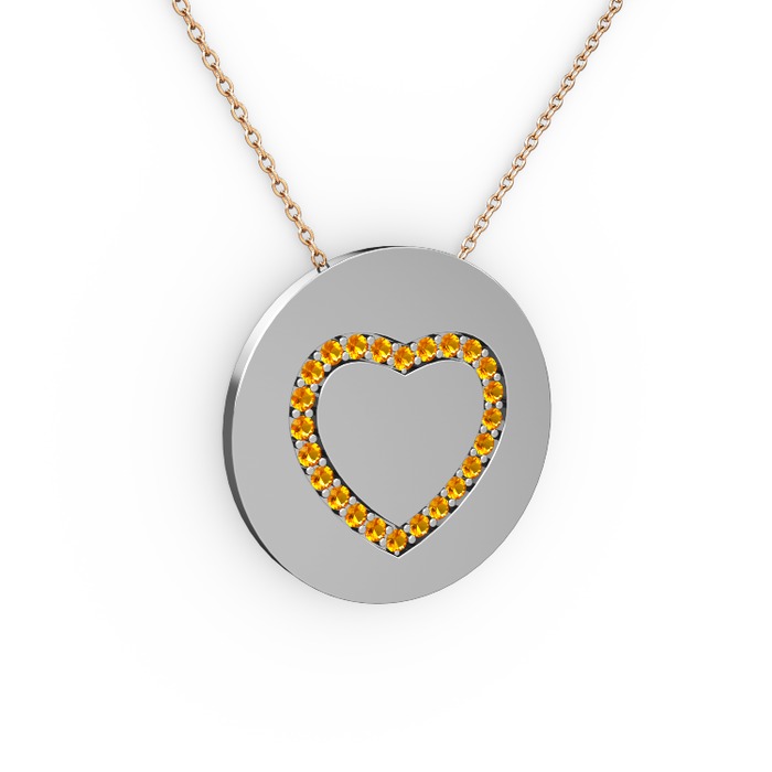 Sitrin 8 ayar beyaz altın kolye (40 cm rose altın rolo zincir)