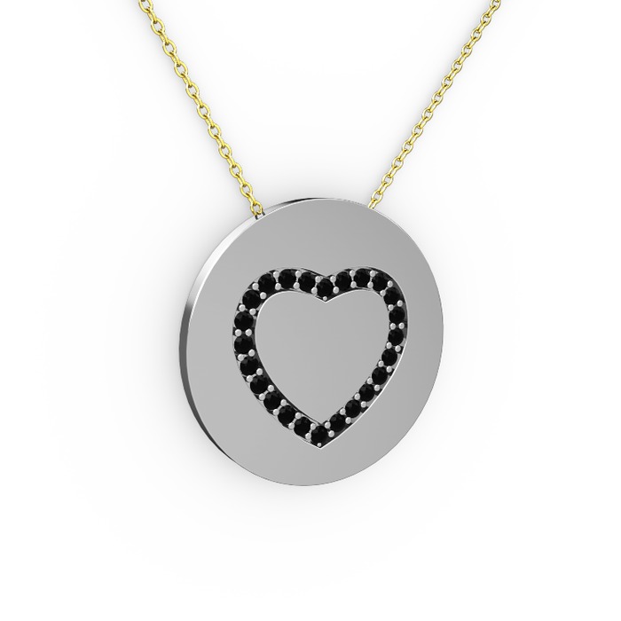 Siyah zirkon 8 ayar beyaz altın kolye (40 cm altın rolo zincir)