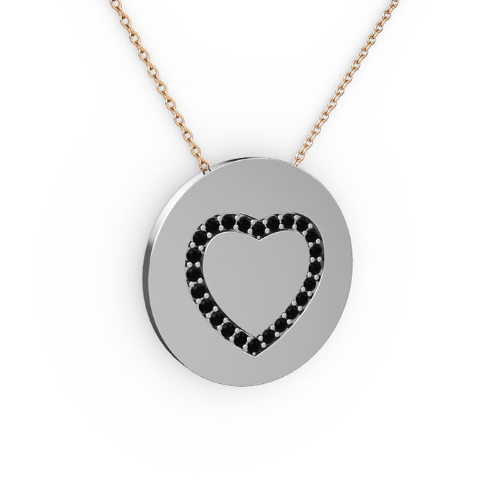 Siyah zirkon 8 ayar beyaz altın kolye (40 cm gümüş rolo zincir)