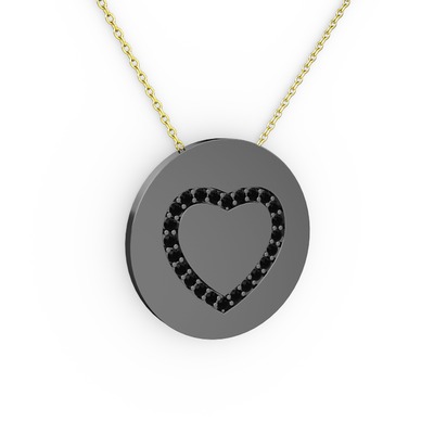 Siyah zirkon 925 ayar siyah rodyum kaplama gümüş kolye (40 cm altın rolo zincir)
