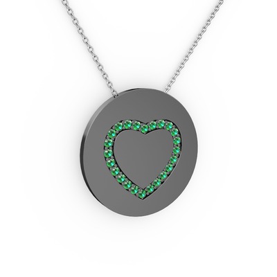 Yeşil kuvars 925 ayar siyah rodyum kaplama gümüş kolye (40 cm beyaz altın rolo zincir)