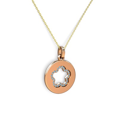 Akuamarin 18 ayar rose altın kolye (40 cm altın rolo zincir)