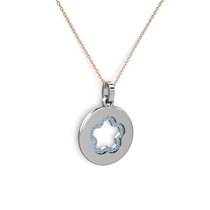 Akuamarin 8 ayar beyaz altın kolye (40 cm rose altın rolo zincir)