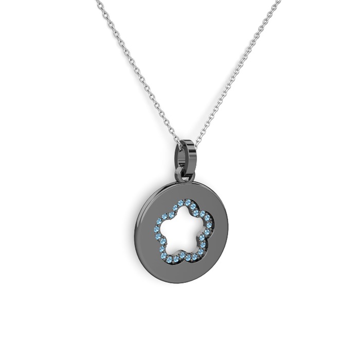 Akuamarin 925 ayar siyah rodyum kaplama gümüş kolye (40 cm gümüş rolo zincir)
