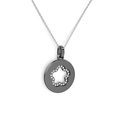Beyaz zirkon 925 ayar siyah rodyum kaplama gümüş kolye (40 cm beyaz altın rolo zincir)