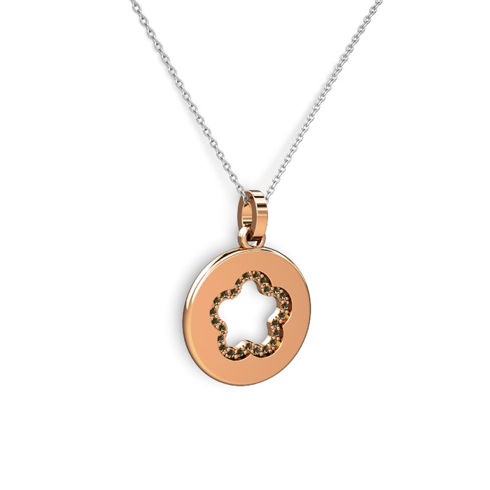 Dumanlı kuvars 14 ayar rose altın kolye (40 cm gümüş rolo zincir)