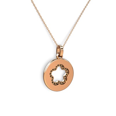 Dumanlı kuvars 8 ayar rose altın kolye (40 cm rose altın rolo zincir)