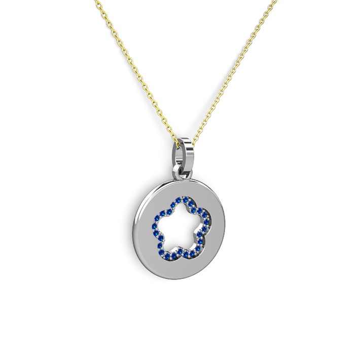 Lab safir 18 ayar beyaz altın kolye (40 cm altın rolo zincir)