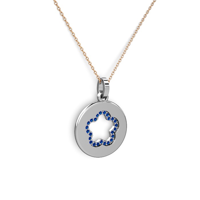 Lab safir 8 ayar beyaz altın kolye (40 cm gümüş rolo zincir)
