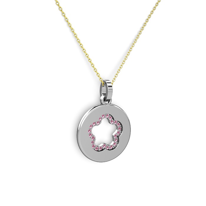 Pembe kuvars 925 ayar gümüş kolye (40 cm altın rolo zincir)