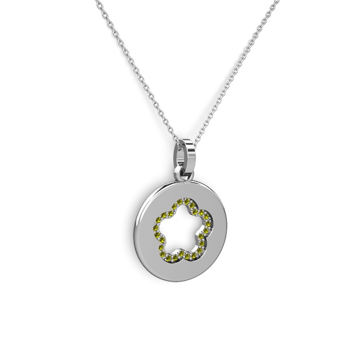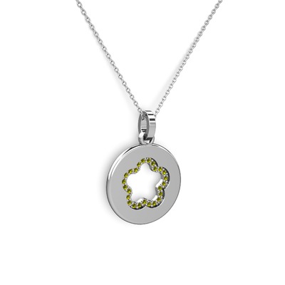 Peridot 14 ayar beyaz altın kolye (40 cm gümüş rolo zincir)