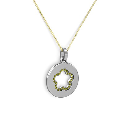 Peridot 18 ayar beyaz altın kolye (40 cm altın rolo zincir)