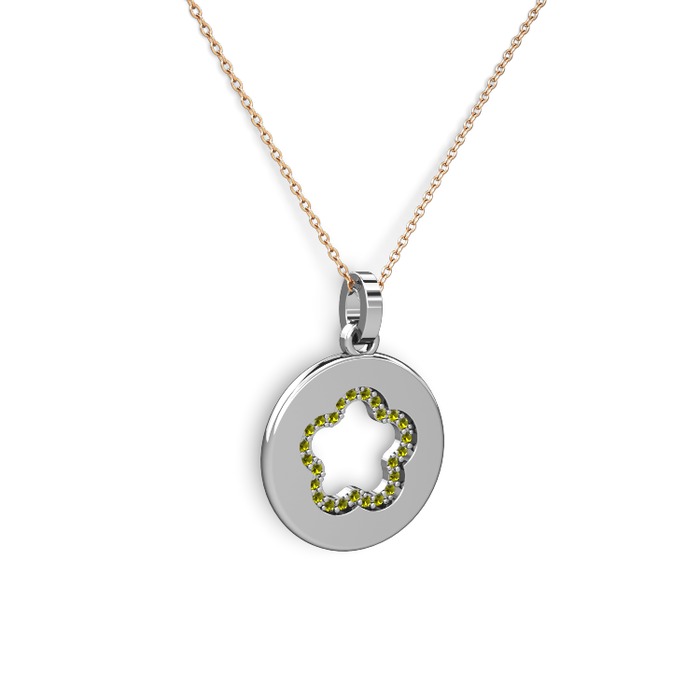 Peridot 18 ayar beyaz altın kolye (40 cm rose altın rolo zincir)