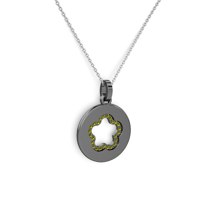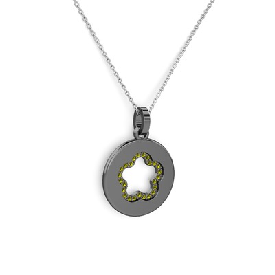 Peridot 925 ayar siyah rodyum kaplama gümüş kolye (40 cm beyaz altın rolo zincir)