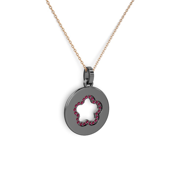 Rodolit garnet 925 ayar siyah rodyum kaplama gümüş kolye (40 cm rose altın rolo zincir)