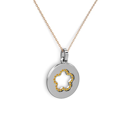 Sitrin 8 ayar beyaz altın kolye (40 cm rose altın rolo zincir)