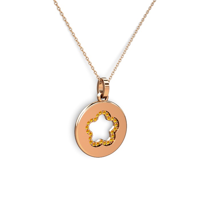 Sitrin 8 ayar rose altın kolye (40 cm rose altın rolo zincir)