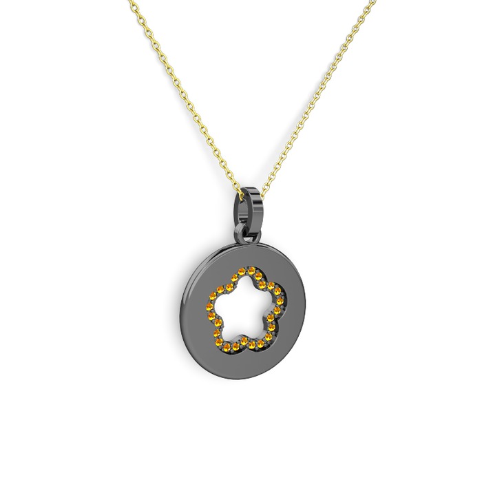 Sitrin 925 ayar siyah rodyum kaplama gümüş kolye (40 cm altın rolo zincir)