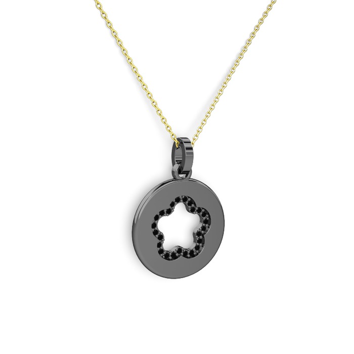 Siyah zirkon 925 ayar siyah rodyum kaplama gümüş kolye (40 cm altın rolo zincir)