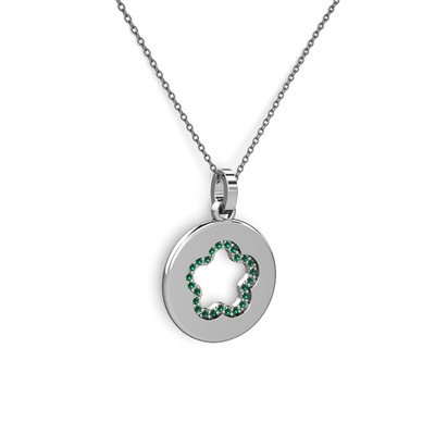 Yeşil kuvars 8 ayar beyaz altın kolye (40 cm gümüş rolo zincir)