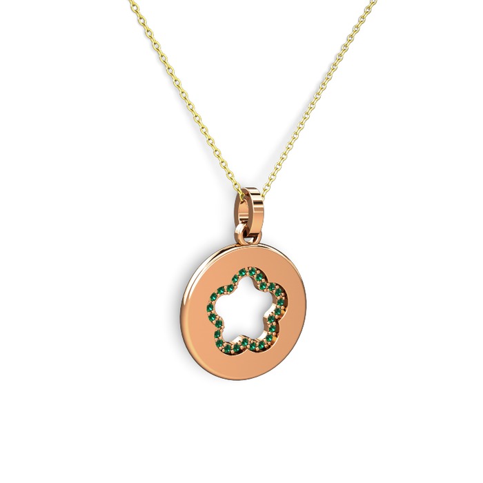 Yeşil kuvars 8 ayar rose altın kolye (40 cm gümüş rolo zincir)