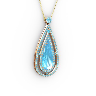 Akuamarin 14 ayar rose altın kolye (40 cm altın rolo zincir)