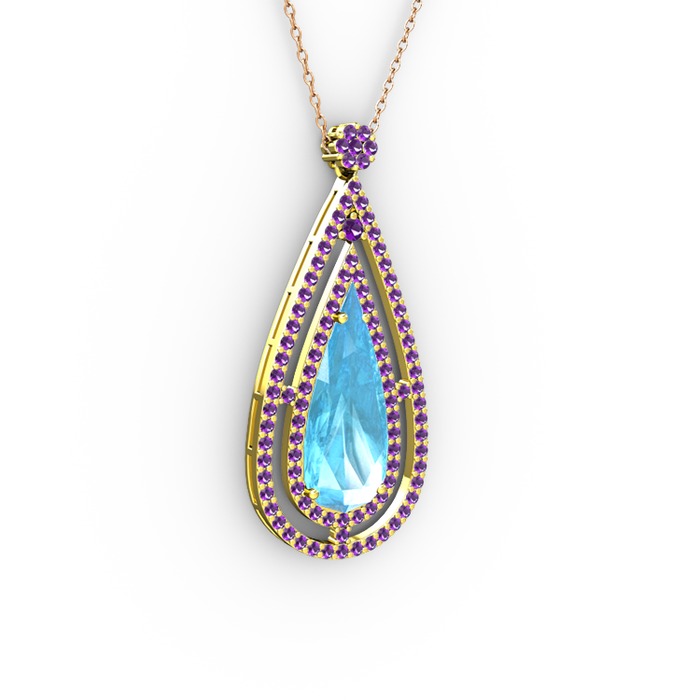 Akuamarin ve ametist 925 ayar altın kaplama gümüş kolye (40 cm rose altın rolo zincir)