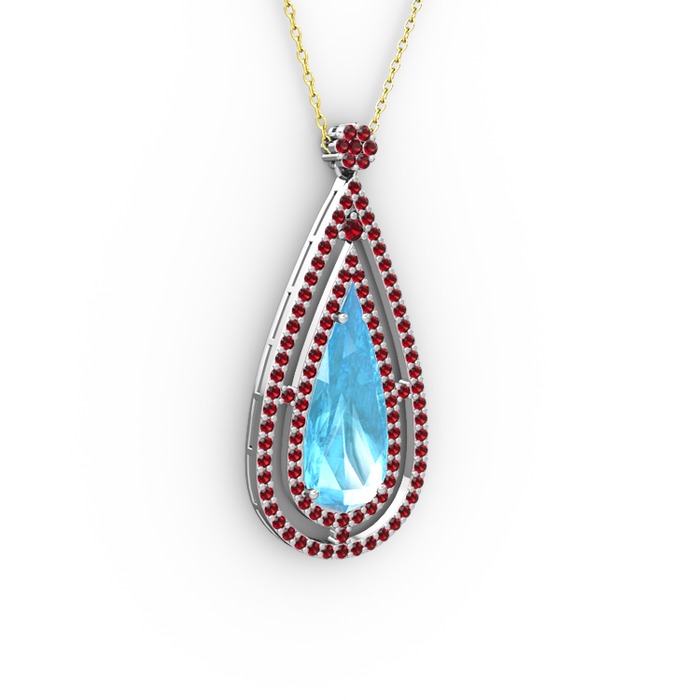 Akuamarin ve garnet 14 ayar beyaz altın kolye (40 cm gümüş rolo zincir)