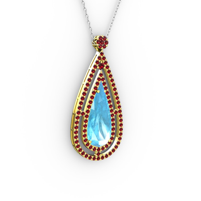 Akuamarin ve garnet 18 ayar altın kolye (40 cm beyaz altın rolo zincir)