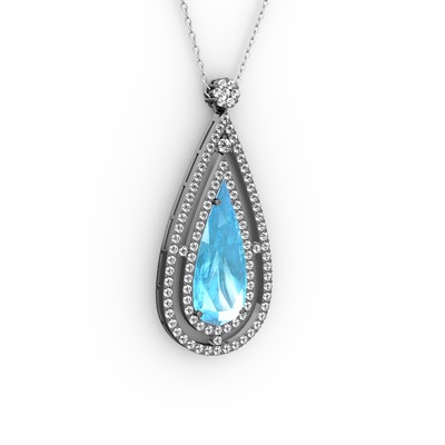 Akuamarin ve swarovski 925 ayar siyah rodyum kaplama gümüş kolye (40 cm beyaz altın rolo zincir)