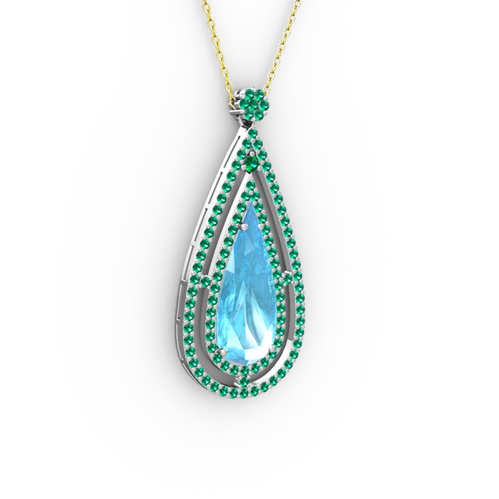 Akuamarin ve yeşil kuvars 18 ayar beyaz altın kolye (40 cm altın rolo zincir)