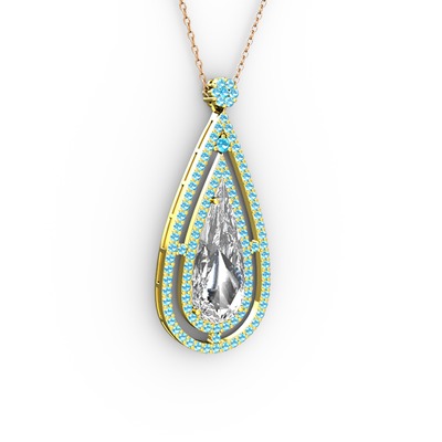 Beyaz zirkon ve akuamarin 14 ayar altın kolye (40 cm rose altın rolo zincir)