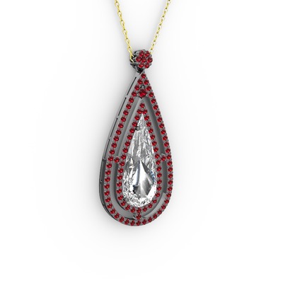 Beyaz zirkon ve garnet 925 ayar siyah rodyum kaplama gümüş kolye (40 cm altın rolo zincir)