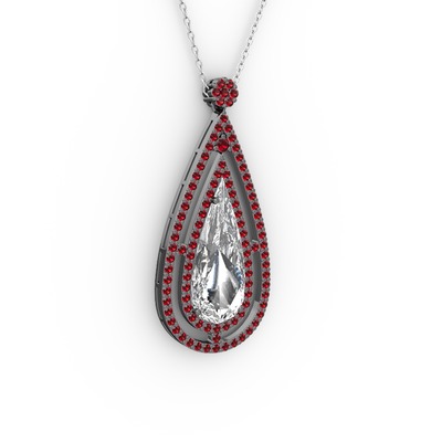 Beyaz zirkon ve garnet 925 ayar siyah rodyum kaplama gümüş kolye (40 cm gümüş rolo zincir)