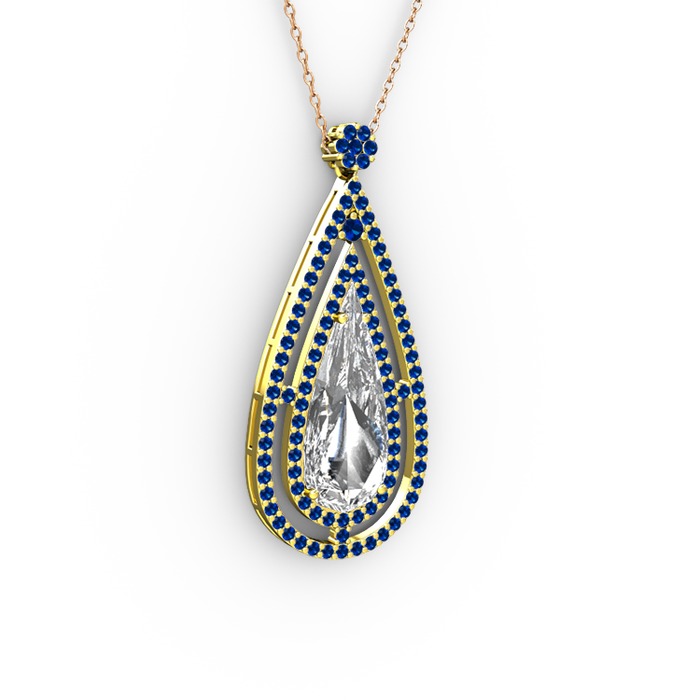 Beyaz zirkon ve lab safir 18 ayar altın kolye (40 cm gümüş rolo zincir)
