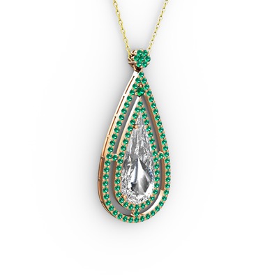 Beyaz zirkon ve yeşil kuvars 18 ayar rose altın kolye (40 cm altın rolo zincir)