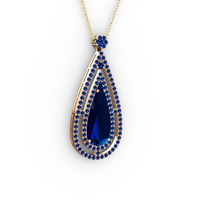 Lab safir 18 ayar rose altın kolye (40 cm altın rolo zincir)