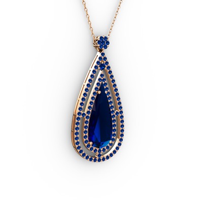 Lab safir 8 ayar rose altın kolye (40 cm rose altın rolo zincir)