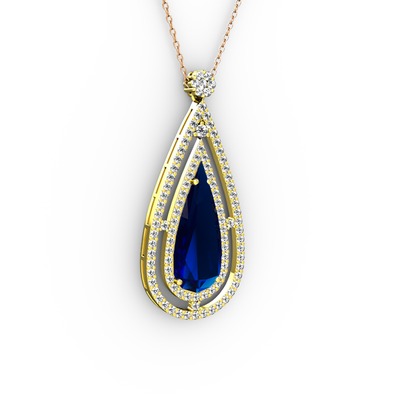 Lab safir ve beyaz zirkon 8 ayar altın kolye (40 cm rose altın rolo zincir)