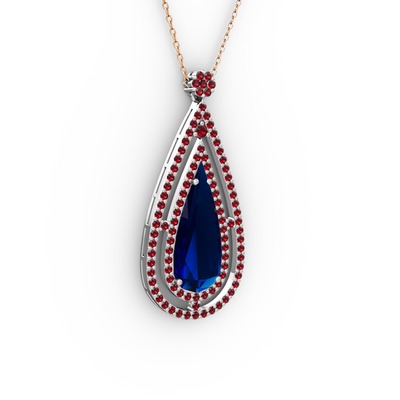 Lab safir ve garnet 14 ayar beyaz altın kolye (40 cm rose altın rolo zincir)