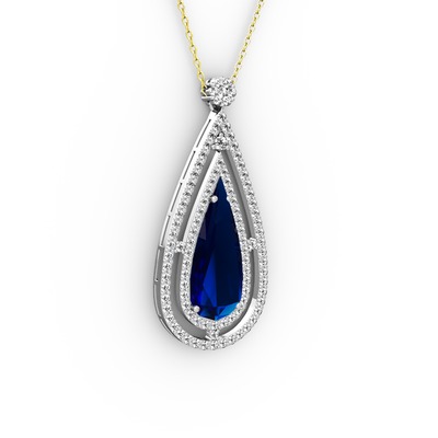 Lab safir ve swarovski 925 ayar gümüş kolye (40 cm altın rolo zincir)
