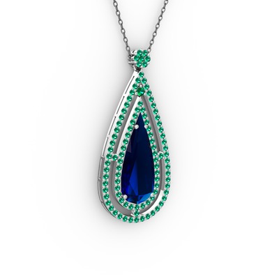 Lab safir ve yeşil kuvars 14 ayar beyaz altın kolye (40 cm gümüş rolo zincir)