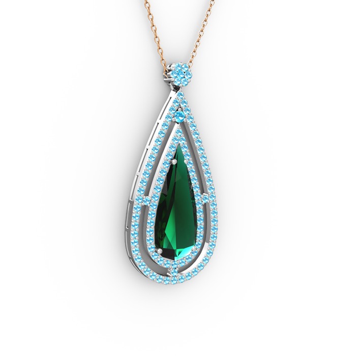 Yeşil kuvars ve akuamarin 925 ayar gümüş kolye (40 cm gümüş rolo zincir)